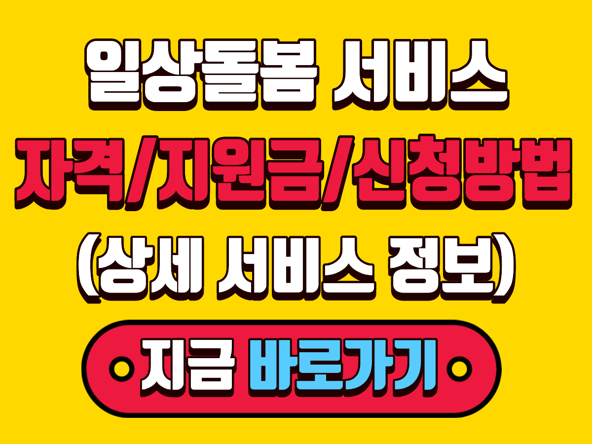 일상 돌봄 서비스는 갑자기 발생한 뜻하지 않은 상황으로 어려운 가정의 돌봄을 위해 정부에서 돌봄 서비스를 지원해 주는 제도입니다. 일상돌봄 서비스에 어떤 종류가 있는지, 지원자격, 지원대상, 지원금 등 핵심사항을 먼저 확인하고 싶으시면 아래 링크를 클릭하시고 신청까지 하시기 바랍니다.